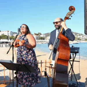 Duo franco-Américain, Casey Jayne et Cyril jouent en acoustique une musique fun, chaleureuse et multiculturelle. Leur répertoire est un bon dosage de standards jazz et succès populaires, arrangés spécialement pour leur instrumentation unique : voix, contrebasse et ukulélé.